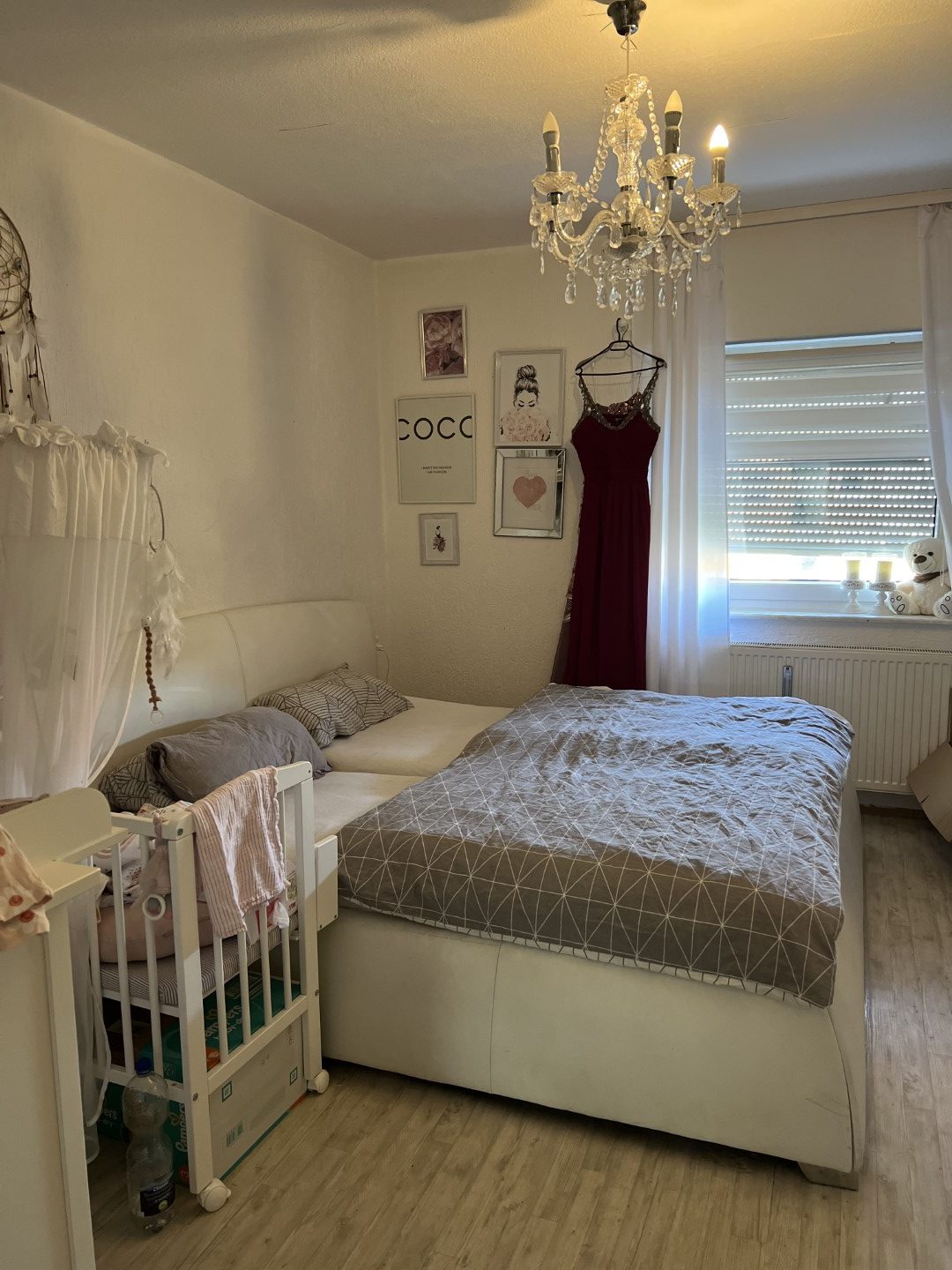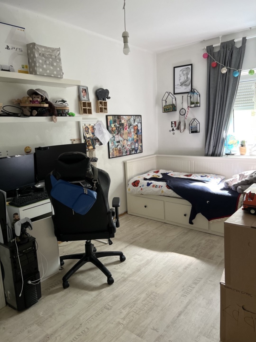 Alle Schlaf- und Wohnräume sind mit Laminatboden ausgestattet und das Bad sowie der Flur und die Küche mit Fliesenboden.